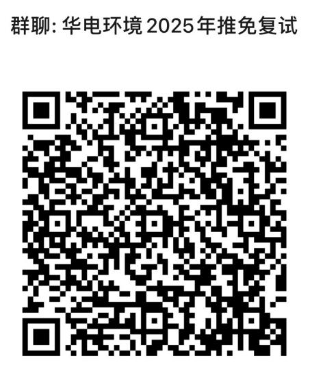 请所有报名的同学务必扫描二维码加入“华电环境2025年推免复试”群,有任何问题可以通过群聊及办公电话咨询。
