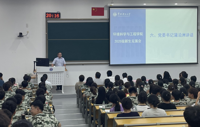会议在庄严热烈的氛围中拉开帷幕。汪黎东首先代表学院向全体2025级新生表示热烈欢迎。随后,他从学院概况、学科建设、师资队伍和科学研究四个方面做了全面介绍。汪黎东指出,在学校党委的坚强领导下,学院长期深耕电力环保领域,紧密围绕国家“双碳”战略目标,构建了学科交叉、产学融合的人才培养体系。2024年,学院成功获批两个博士点,学院学科排名进一步提升,科研项目和科研经费持续增长。未来,学院将进一步坚守电力环保特色,拓展交叉创新内涵,将学院建设成为在国际上有影响力、在国内不可替代的能源环境领域人才培养和科技创新高地。