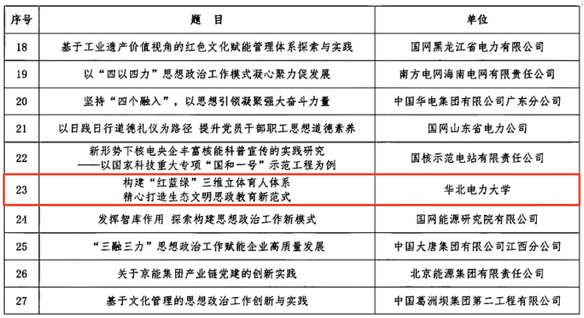 近日,中国电力思想政治工作研究会公布了2025年基层思想政治工作创新案例名单,我校jdb电子中国官方网站与马克思主义学院联合申报的《构建“红蓝绿”三维立体育人体系 精心打造生态文明思政教育新范式》案例成功入选。