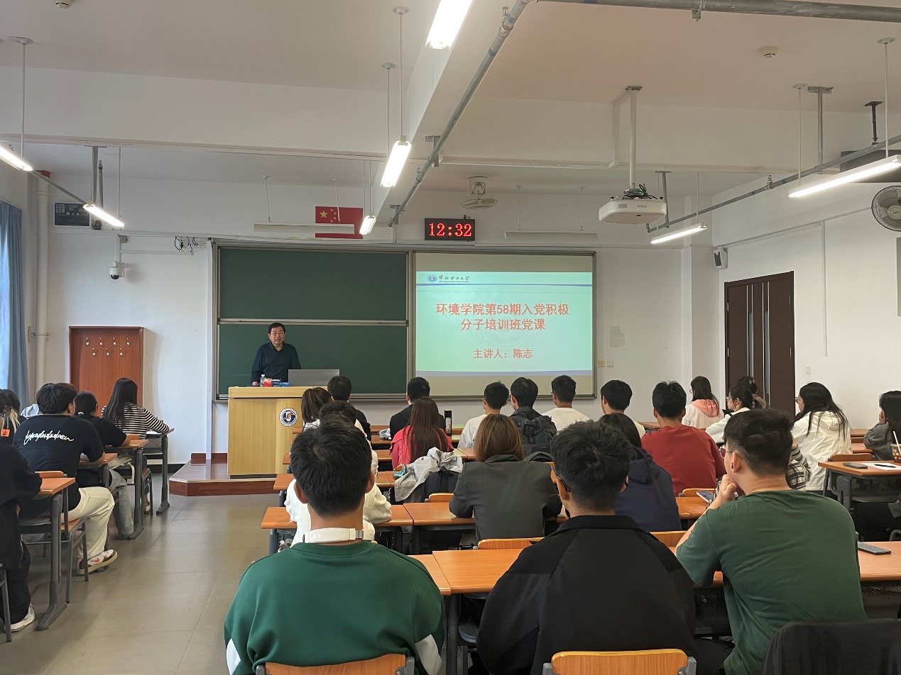 10月12日,jdb电子中国官方网站于主G510举行第58期入党积极分子培训班开班仪式暨第一次党课。学院党委书记陈志为入党积极分子讲授第一堂党课,开班仪式由学院团委书记焦扬主持。