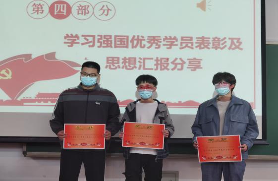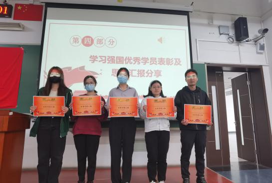 会议对2023年第一季度学习强国优秀学员及优秀思想汇报进行了表彰。根据学院学生党员学习强国积分排名,经研究决定,对梁致远等3名同学环境学院2022-2023学年第一季度“学习强国”先进个人予以表彰,授予“学习强国学习标兵”荣誉称号,并评选出2022年第四季度和2023年第一季度的优秀思想汇报共5篇。表彰活动进一步推进学生党员理论学习常态化,切实增强学习实效。